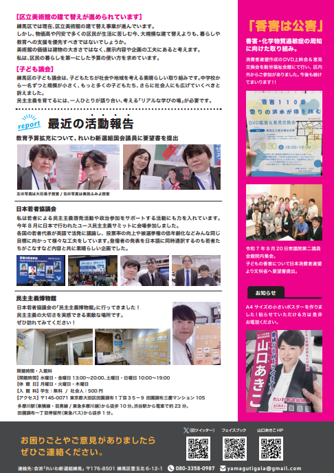 是非、れいわ新選組練馬会派、山口にご注目を引き続きお願い申し上げます。